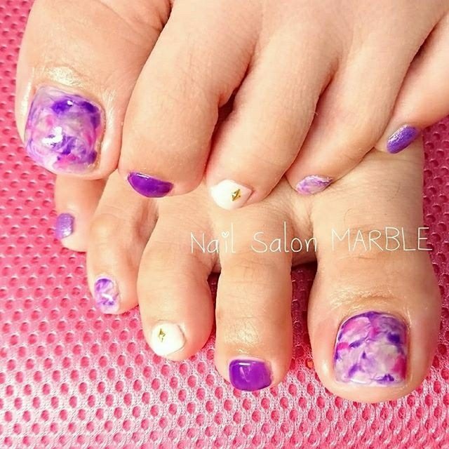 √ フット ネイル 紫 マーブル 170315